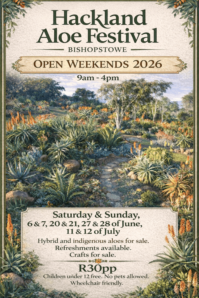 Hackland Aloe Garden was established in 2012 and consists of beautiful indigenous aloes, as well as some Hybrid Sunbird Aloe varieties.